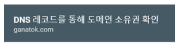 - 첫 번째 이미지에서는 gana.today 도메인에 대한 TXT 레코드 확인을 요청하고 있습니다. 확인해야 할 TXT 레코드 값은: google-site-verification=8z6pBvSRcBQ1kmzcrCdy0wqfBpe7szYlp1